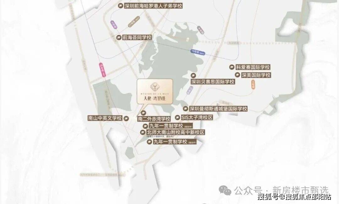 从幼儿园到高中的完整教育链,满足不同家庭的教育需求。项目对口南二外(集团)赤湾学校(九年一贯制公办学校),该校创办于1964年,规模为36个班(小学26班、初中15班),现有学生近1700名,教师114人,其中25%具有硕士学位,挂牌教师比例位居南山区公办学校前列。该校秉持为孩子的幸福人生奠基办学理念,构建无边界学习体系,开发统整大课堂、STARS课程以及写字课、阅读课、赤湾讲坛课、音乐欣赏、棋类课等校本课程,组建文学社、数学俱乐部等70余个学生社团。该校特色在于校园设计融合山海景观,屋顶花园与岭南庭院提升学习环境,且已获评2008年南山区教育现代化示范学校等称号 。